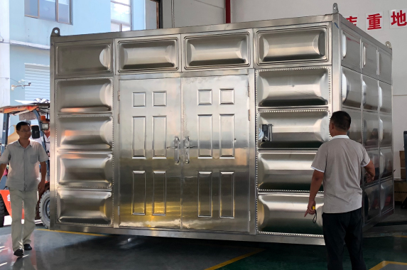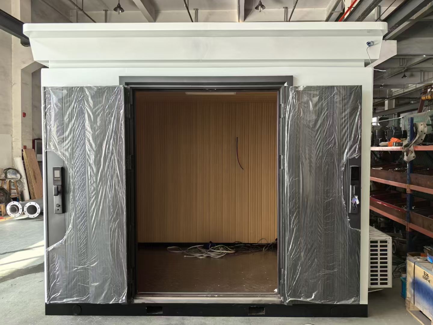 外墻為304不銹鋼材質,內墻為環保生態墻板;墻板材料具有清潔方便、綠色環保、安裝快捷、時尚美觀、防火防潮等特點。地板為熱鍍鋅壓花鋼板,美觀堅固。
