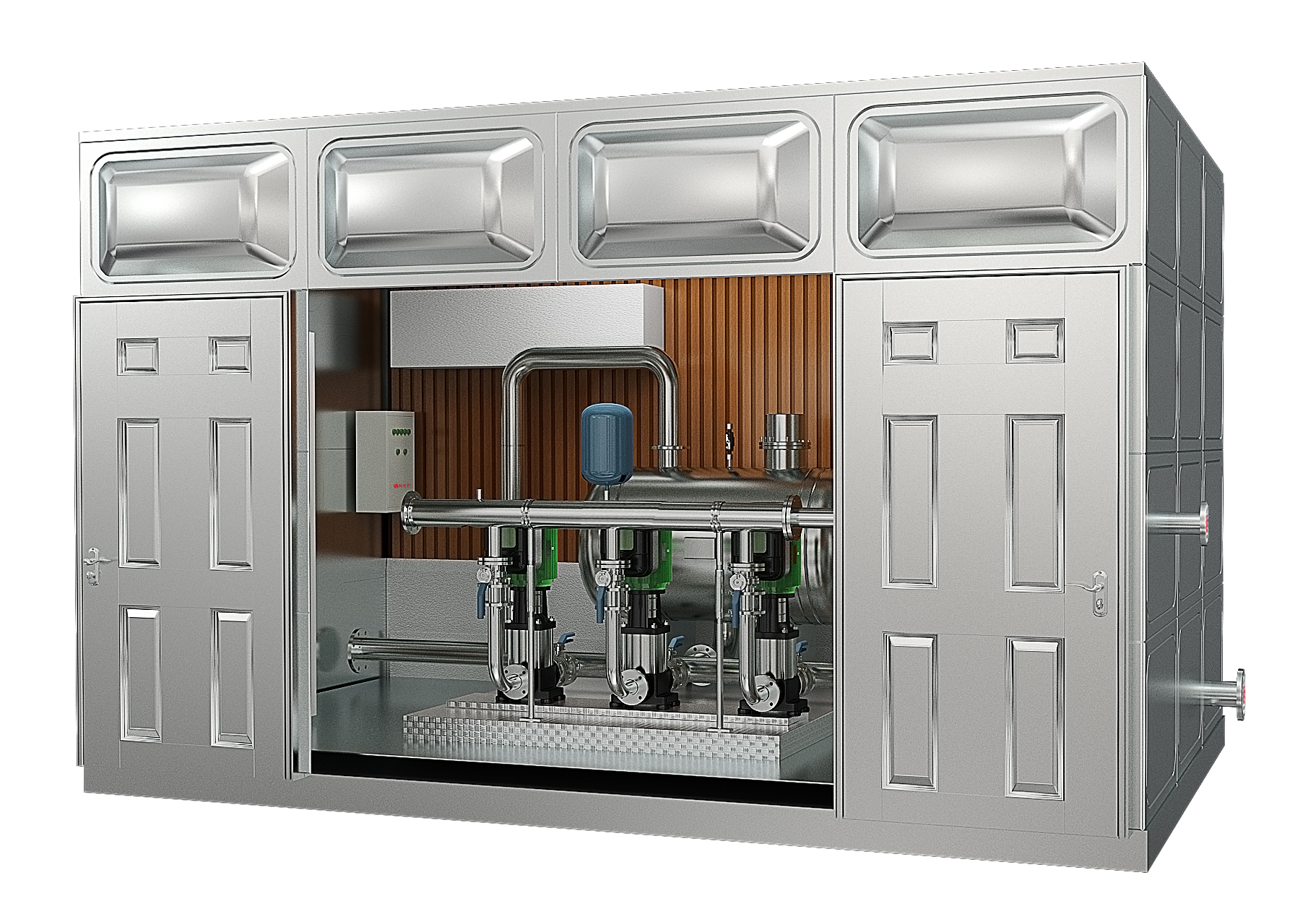 泵站外形美觀、體積小巧、安裝快速、使用維護便捷,可很廣用于居民住宅、商業大樓、工業區、學校等需要二次供水的區域,亦可用于住宅小區老舊泵房改造項目。