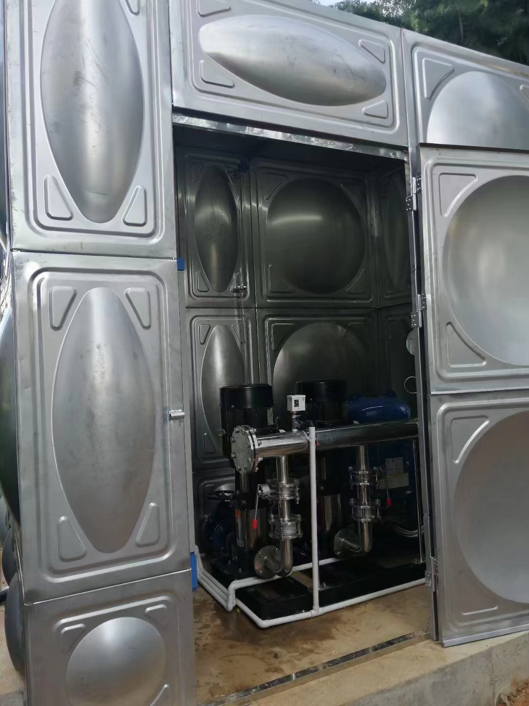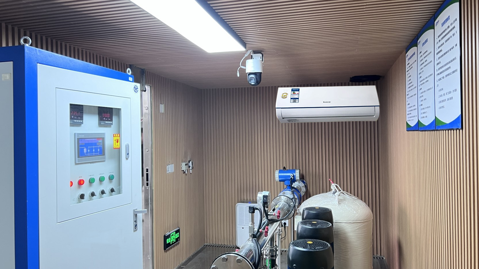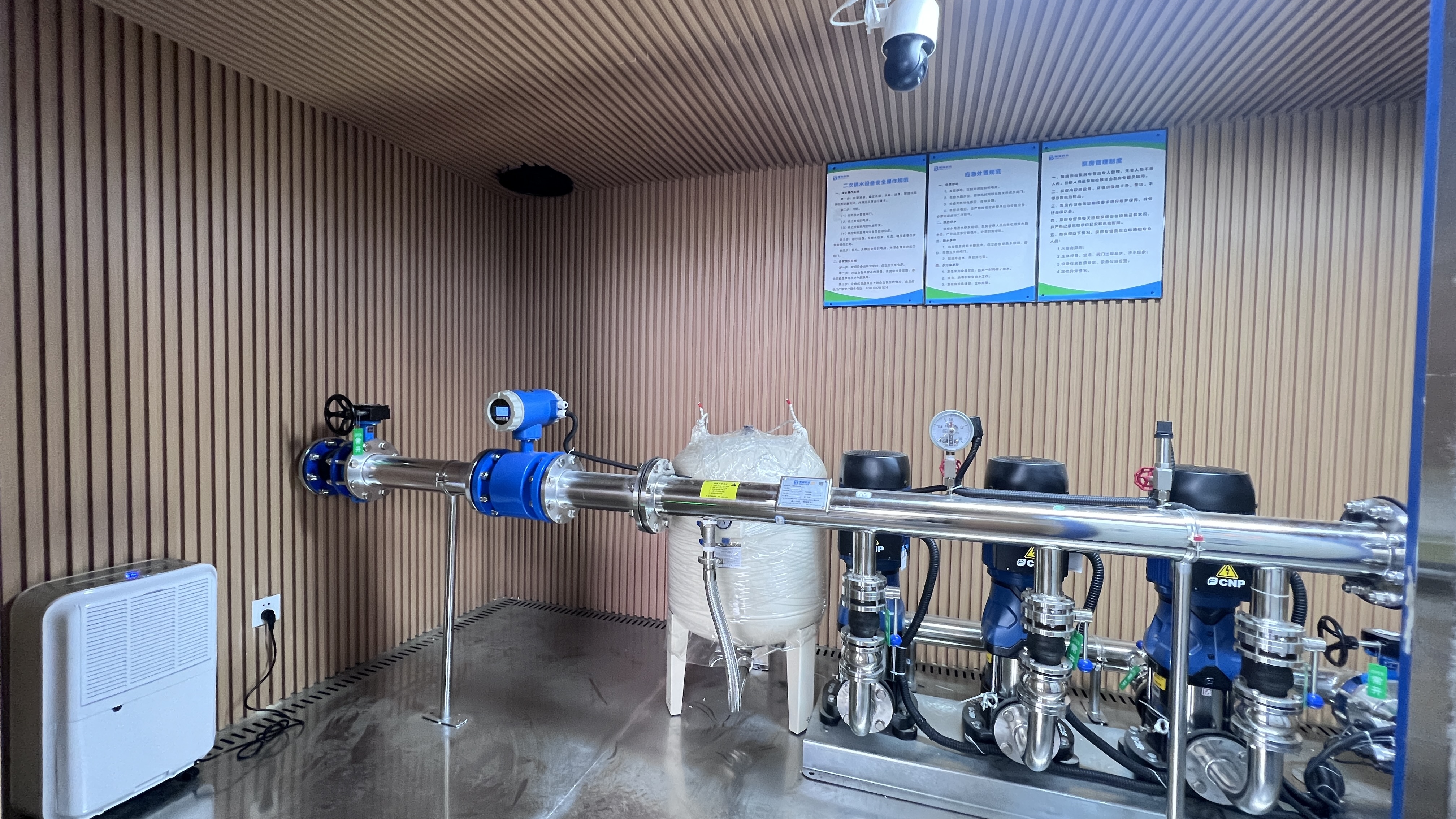 泵站將供水機組、電氣控制系統、安防系統、水質監測系統、遠程監控系統、流量監測設備、消毒設備、空調和除濕設備等集于泵站之內,泵站功能一應俱全。